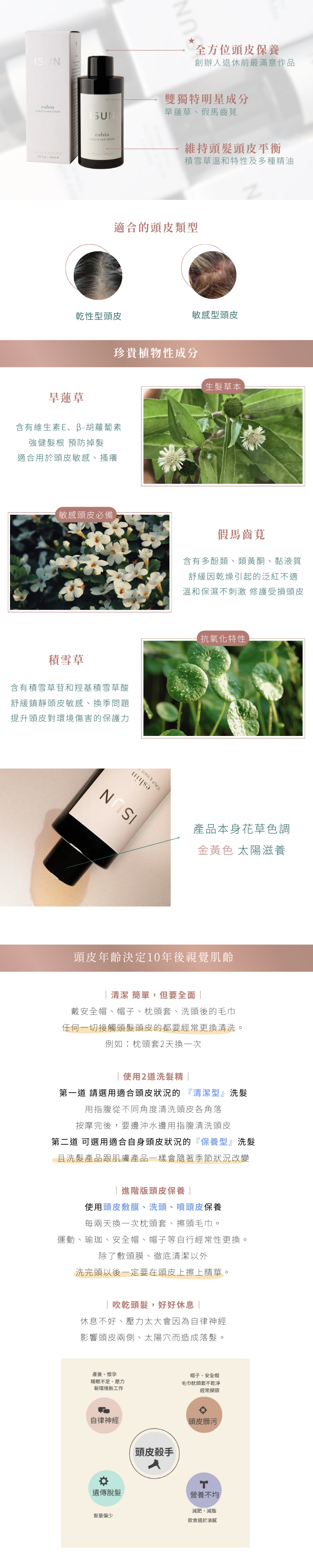 創辦人退休前最滿意作品 ,雙獨特明星成分:旱蓮草(Bhringraj)、假馬齒莧(Brahmi)維持頭髮與頭皮平衡。