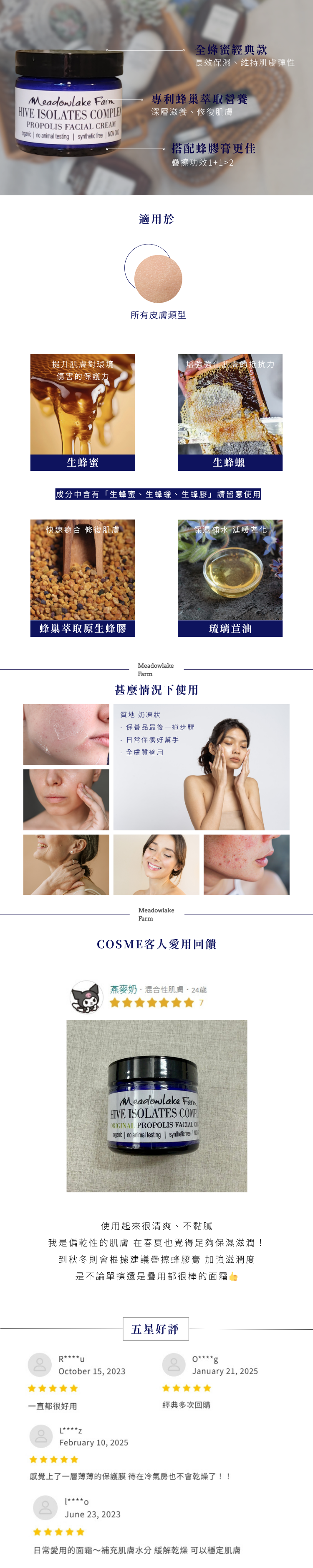 成分中含有「生蜂蜜、生蜂膠、生蜂蠟」請留意使用。