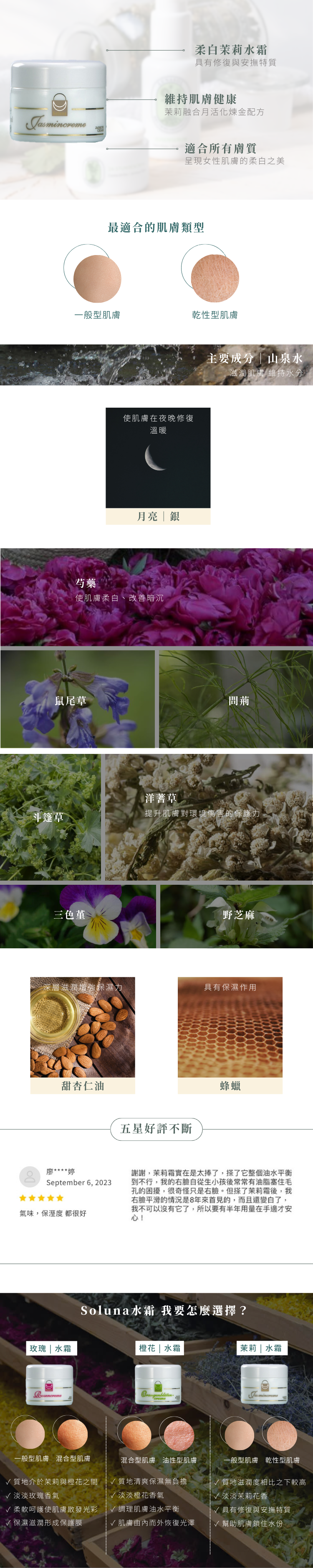 與洋蓍草、芍藥花植萃,維納斯的象徵花草,完美呈現夜茉莉 Queen of the Night,是具有修復與安撫特質的面霜