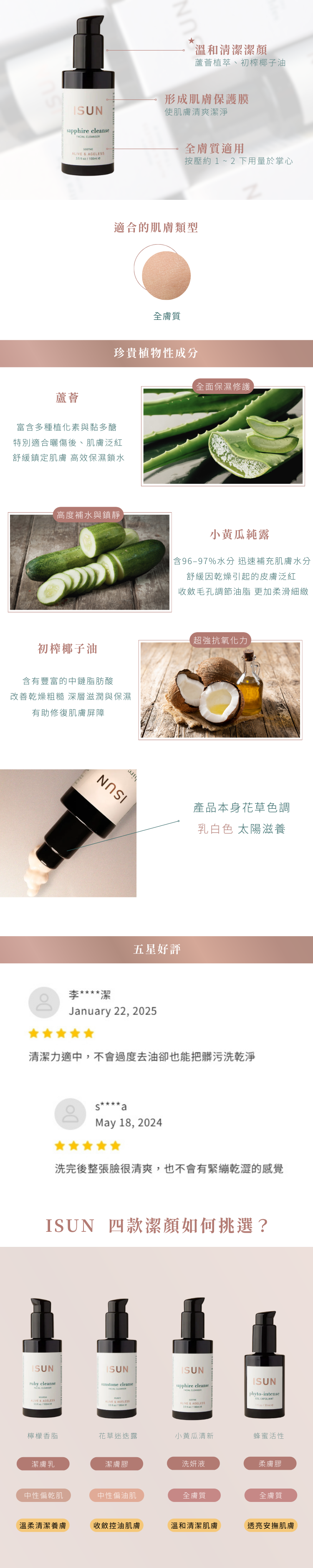 採用蘆薈植萃,初榨椰子油,植物油葡萄糖,本產品不含精油及酒精,在能溫和清潔肌膚,形成肌膚保護膜。