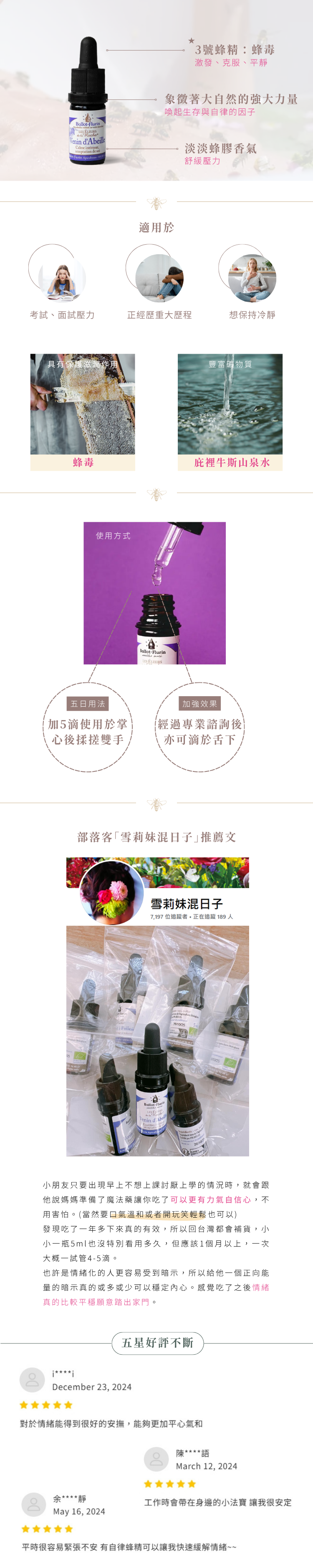 Bee Venom Elixirs:I am calm and confront my past. I accept and love myself as I am