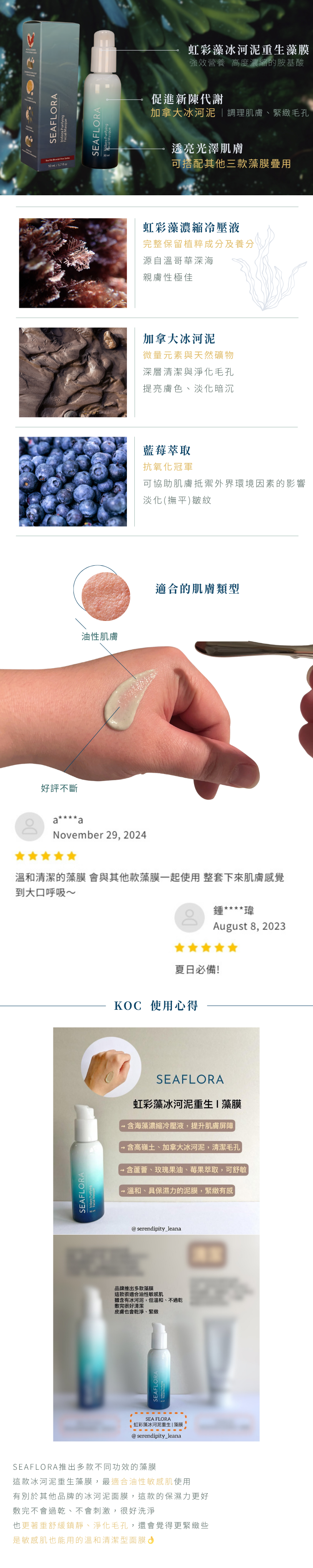 [強效營養面膜] : 高度濃縮的胺基酸、鋅、貝他胡蘿蔔素,添加加拿大冰河泥成份,在調理肌膚,緊緻毛孔,促進肌膚新陳代謝,呈現透亮光澤。