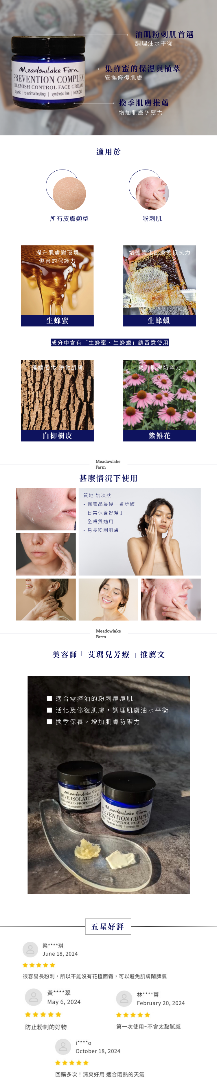 美國蜂巢萃取營養,與自栽草本植萃,每項製成與來源皆能掌握,活化及修復肌膚,增加肌膚防禦力,調理肌膚油水平衡。