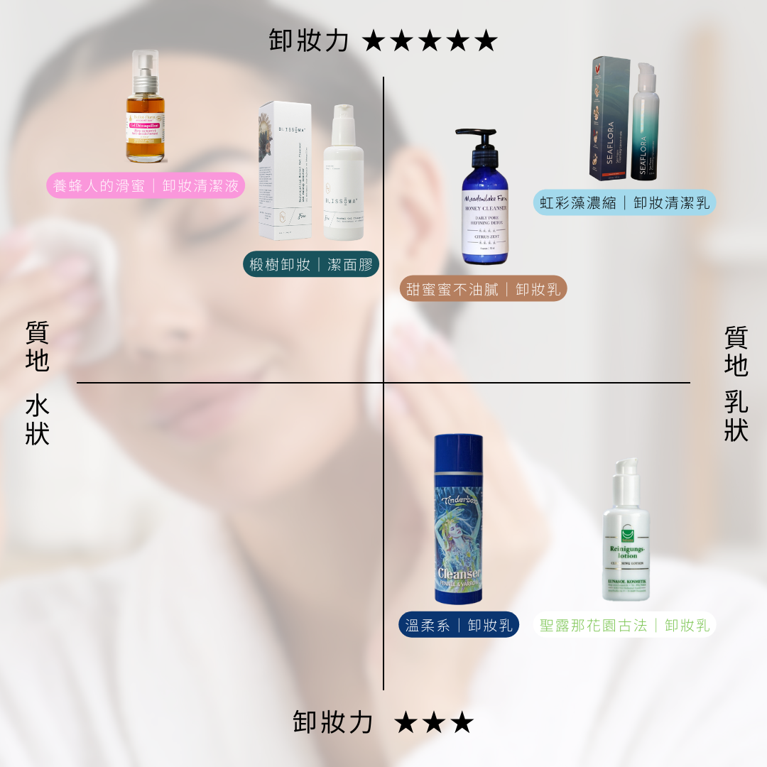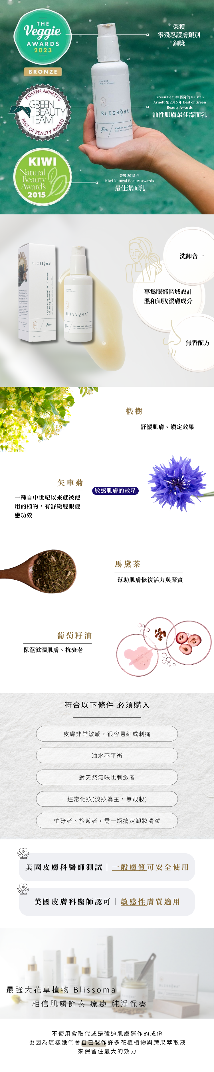 集結椴樹、矢車菊、馬黛茶、葡萄籽油,溫柔且堅強的卸妝潔膚成分。